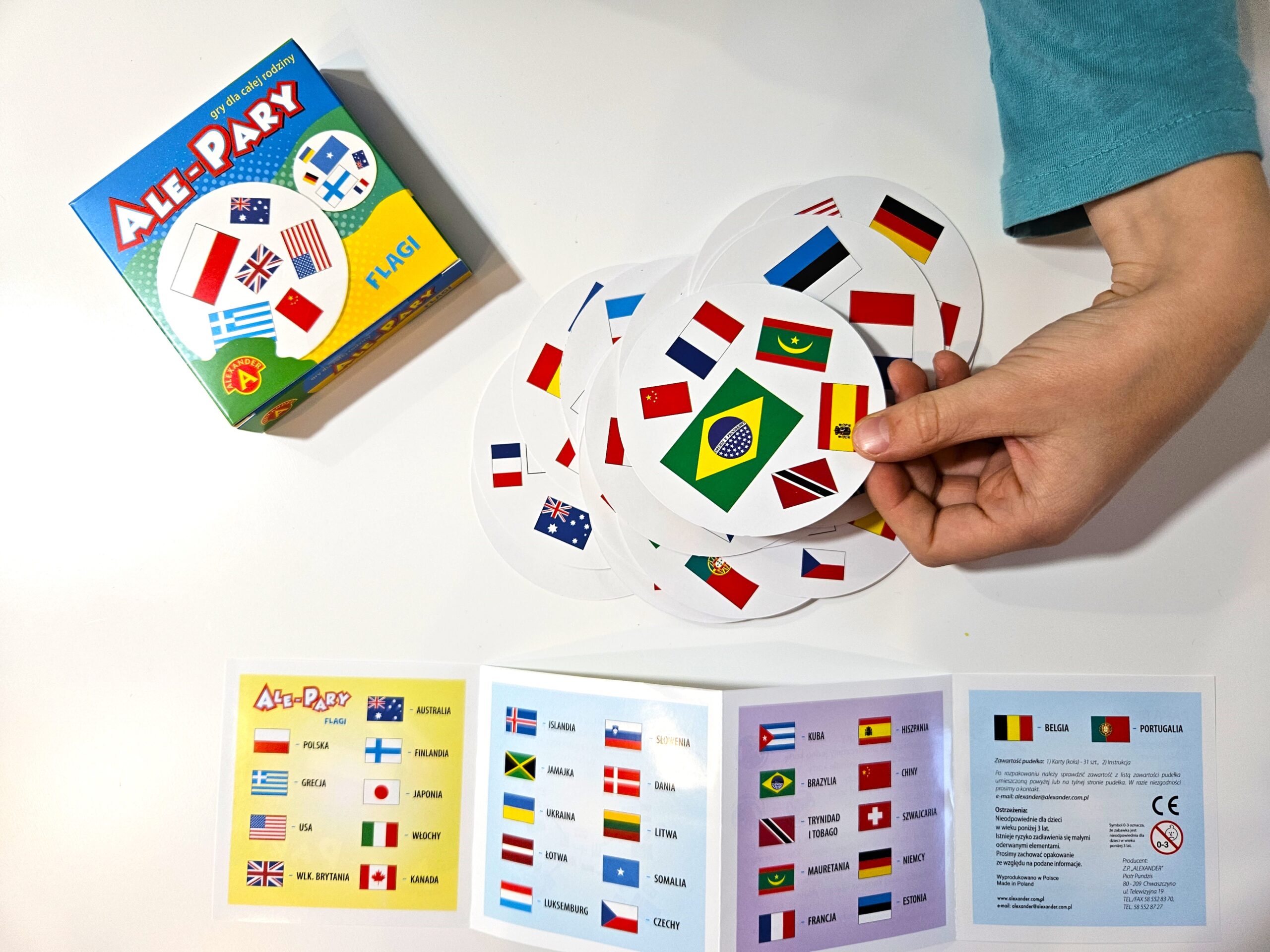 Gry ALE PARY – Flagi to zabawa pełna emocji, w której możesz sprawdzić i ćwiczyć swoją spostrzegawczość i refleks. Zasady gry są proste – na każdej odsłoniętej parze kart należy jak najszybciej znaleźć ten sam obrazek. Gra ma wyjątkowy walor edukacyjny, ponieważ parując dwa takie same obrazki z flagą, gracz musi podać nazwę kraju do którego dana flaga należy. Oczywiście gra zaopatrzona jest w instrukcję, na której znajdziemy nazwy wszystkich flag, dzięki czemu możemy się z nimi zapoznać przed zabawą. Dwa warianty zabawy.