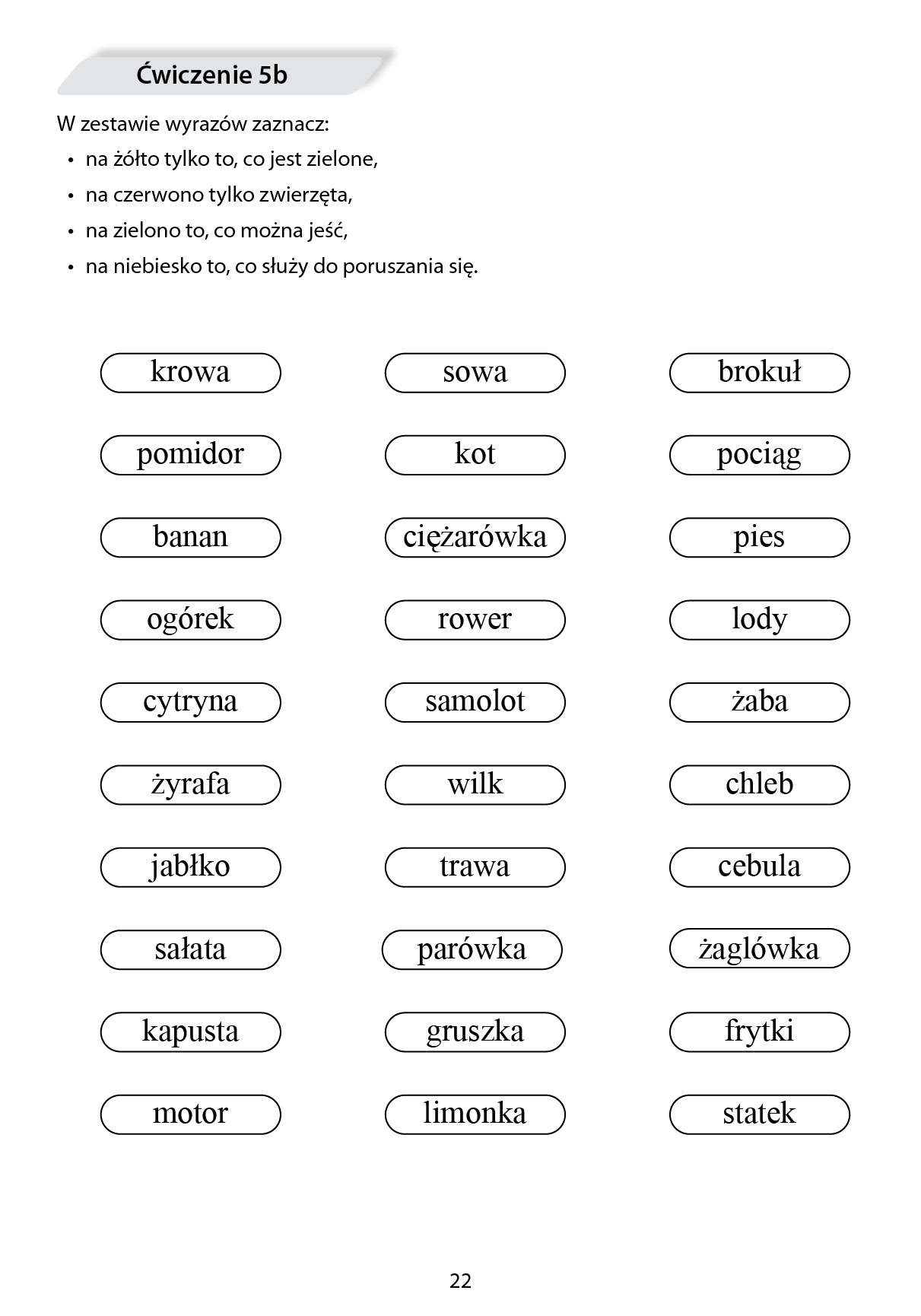 Ćwiczenia zawarte w tej publikacji są przeznaczone dla dzieci, które opanowały już technikę czytania i pisania, ale mają trudności z budowaniem systemu językowego. Z książki mogą korzystać również osoby dorosłe z zaburzeniami w komunikacji językowej.