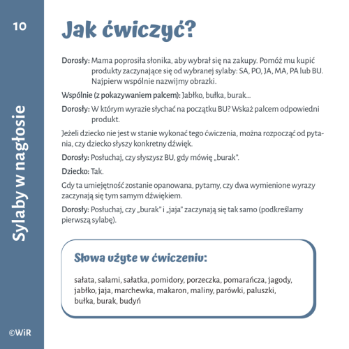 Do każdej zabawy dołączona jest instrukcja dla dorosłego, który towarzyszy dziecku w zabawie.