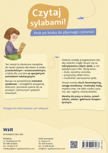 Czytaj sylabami. Zeszyt do nauki i doskonalenia czytania to skuteczne narzędzie do nauki czytania dla dzieci w wieku przedszkolnym i wczesnoszkolnym, a także dla uczniów ze specjalnymi potrzebami edukacyjnymi.