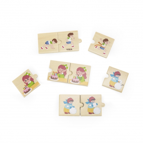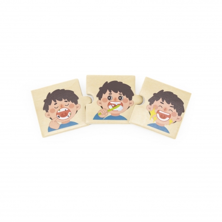 - – 24 płytek – puzzli z kolorowymi obrazkami dzieci wykonujących różne czynności