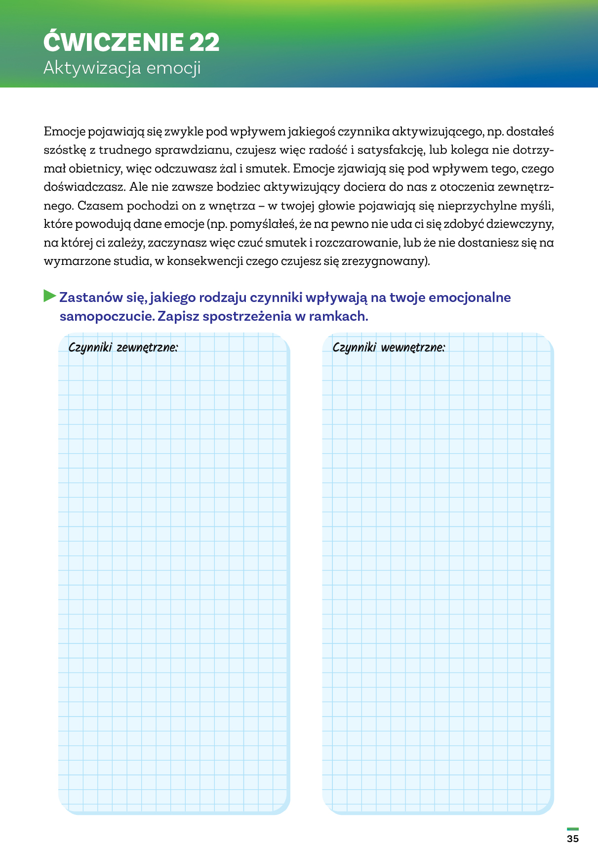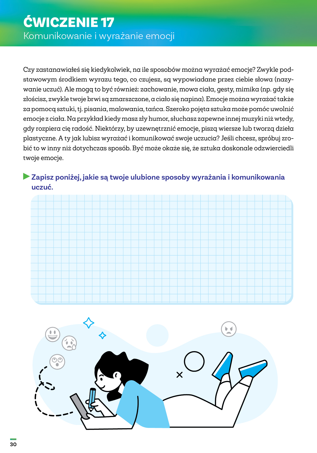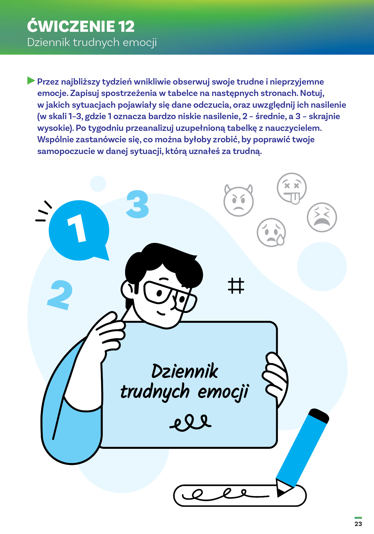 Zawarte w tej publikacji ćwiczenia mają na celu uświadomienie nastolatkom w spektrum autyzmu występowania szerokiego wachlarza emocji i cech charakteru, doskonalenie umiejętności ich nazywania i rozmawiania o nich, a także naukę samokontroli i regulacji emocji oraz uczuć. Materiał ćwiczeniowy umożliwia pracę z przekonaniami i myślami na temat różnych trudnych stanów emocjonalnych oraz proponuje sposoby ich oswajania i wyciszania (np. poprzez relaksację czy afirmacje). Praca z emocjami nastolatków jest bardzo istotna, gdyż bez niej są oni narażeni na frustrację potrzeb i ryzyko uciekania w niebezpieczne zachowania, takie jak samookaleczanie, stosowanie używek, zamykanie się w sobie i odcinanie od świata. Niewystarczająca praca z emocjami u nastolatków lub jej całkowity brak mogą także skutkować kryzysami psychicznymi i chorobami, np. depresją.