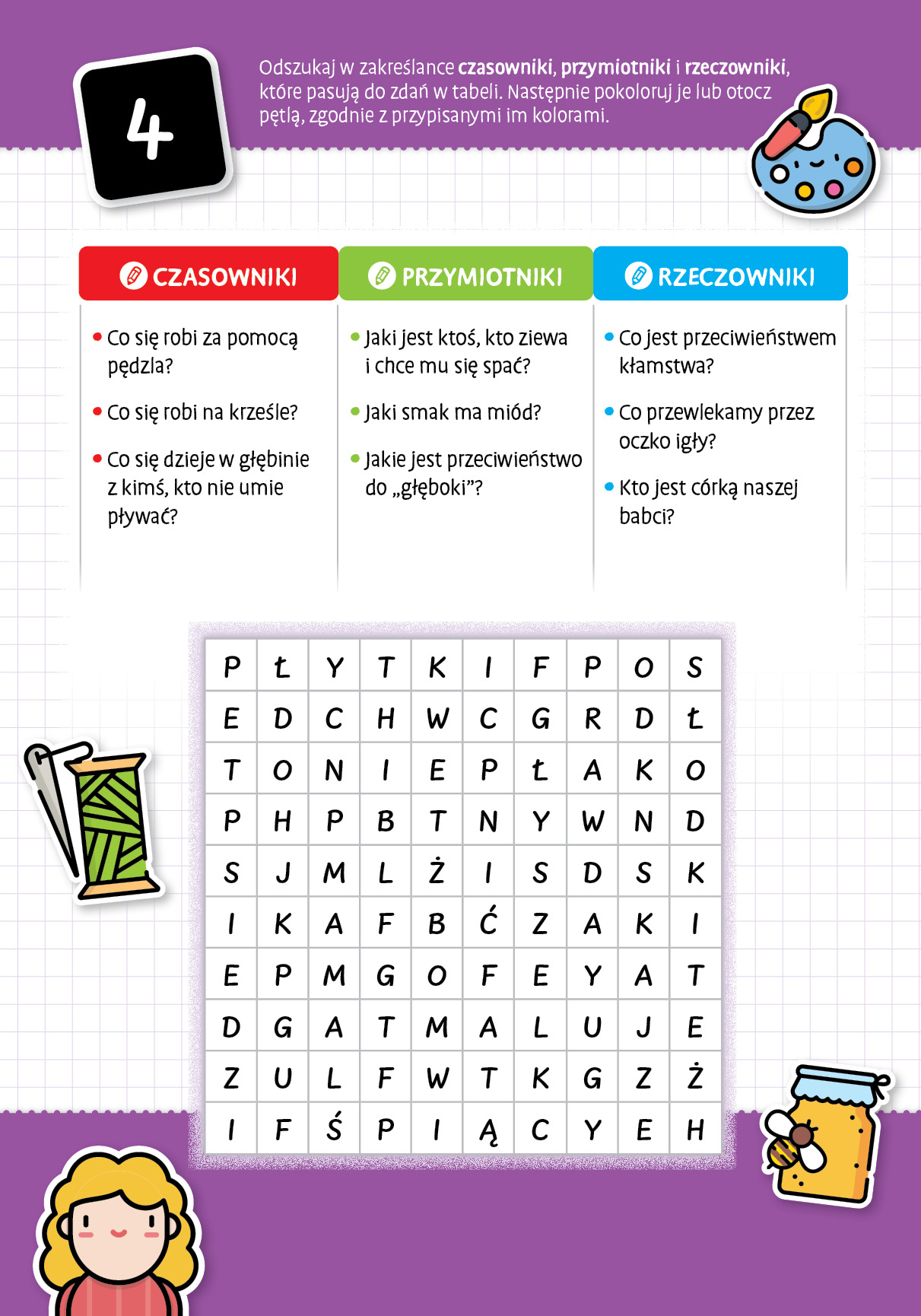 PONAD 300 UKRYTYCH SŁÓW! 38 TABEL Z ZAKREŚLANKAMI, Z PYTANIAMI O CZASOWNIKI, PRZYMIOTNIKI, RZECZOWNIKI!