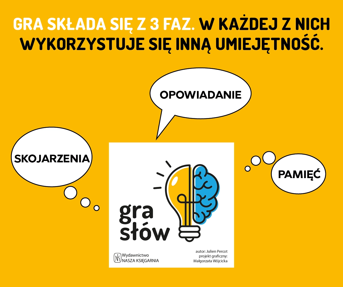 Podczas rozgrywki nie rywalizujecie ze sobą! Wspólnie staracie się osiągnąć jak najlepszy wynik. Gra podzielona jest na 3 części, podczas których wykorzystujecie umiejętność opowiadania, kojarzenia oraz dobrą pamięć.