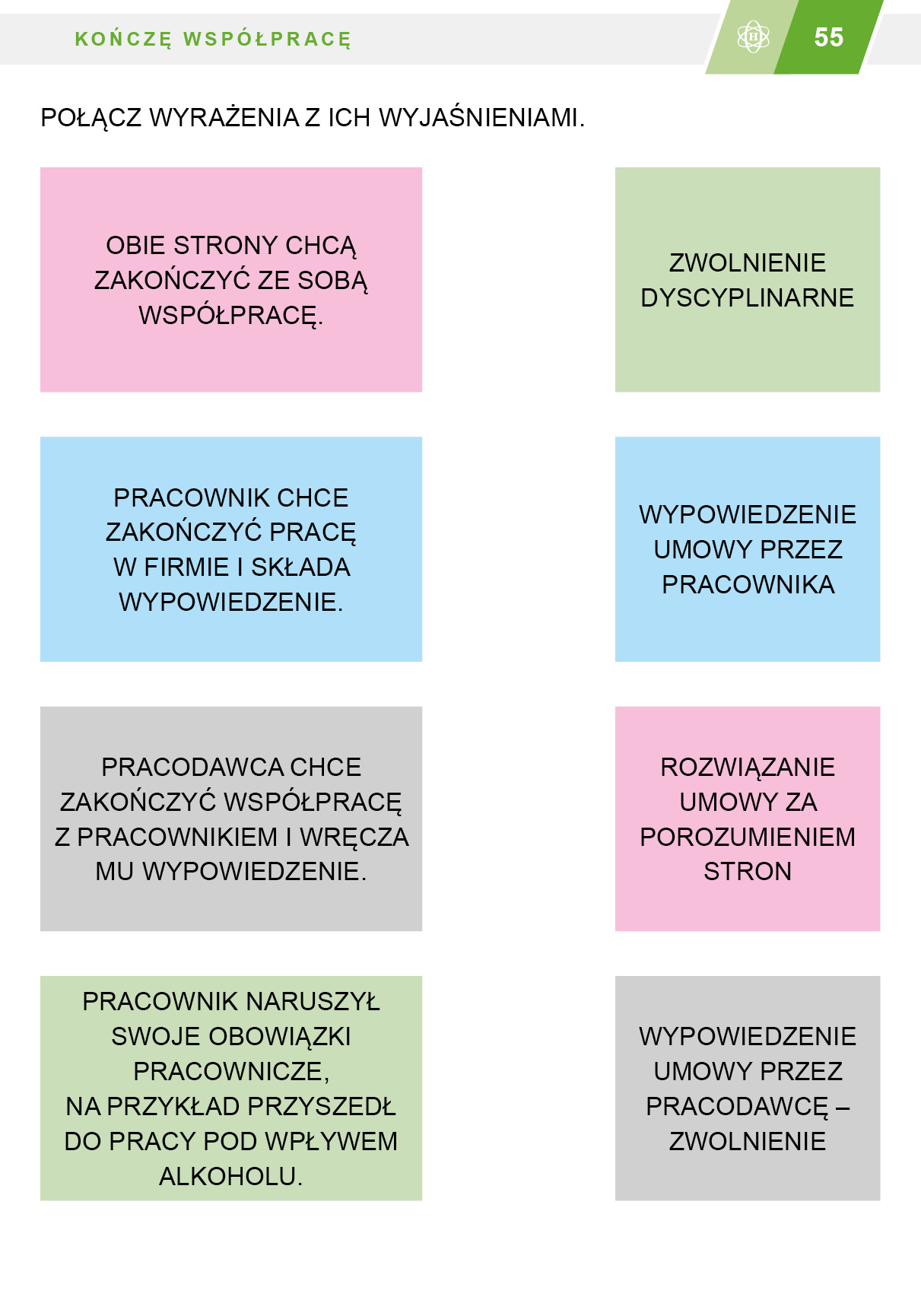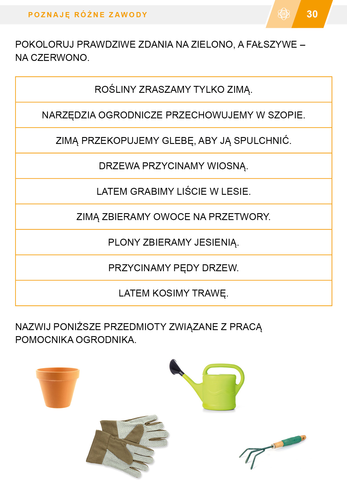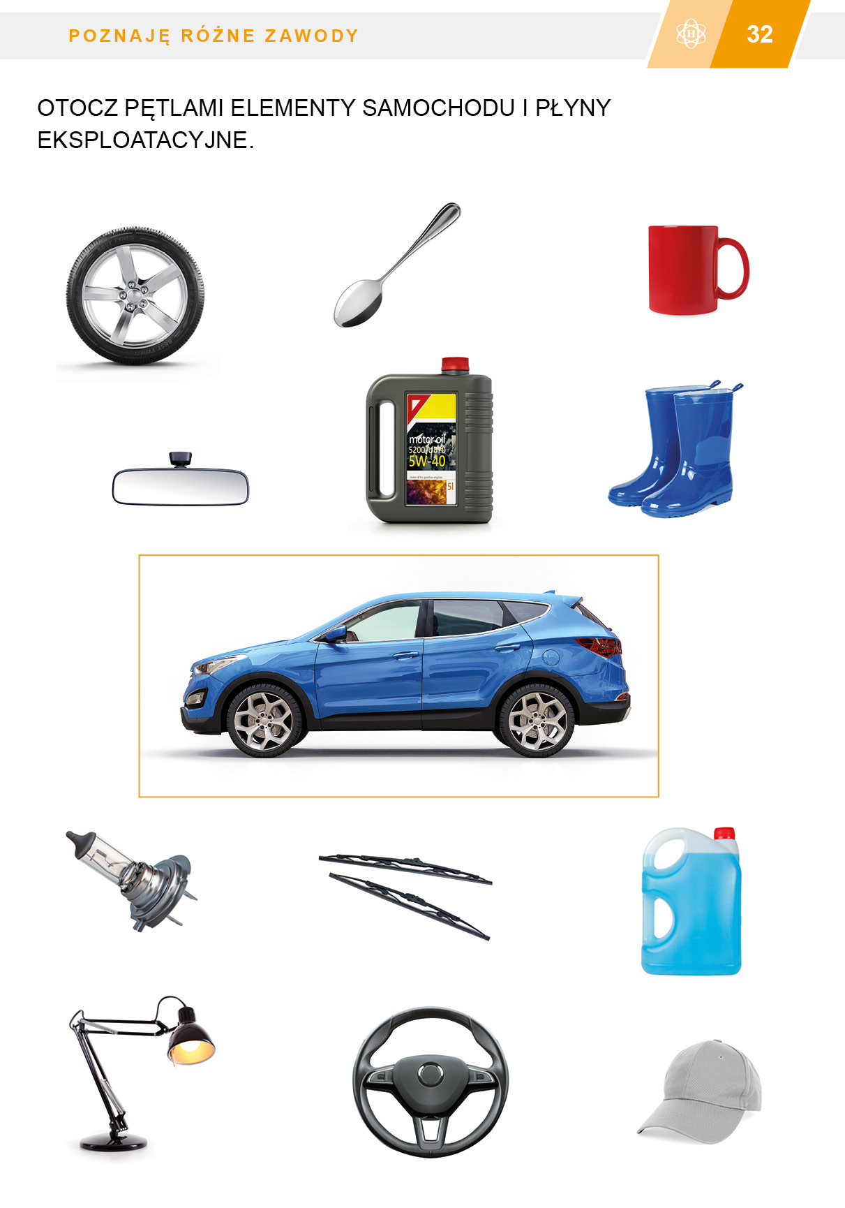 W teczce wraz z kartami pracy znajdują się również dzienniczek coachingowy oraz plansze do nauki doboru stroju roboczego.