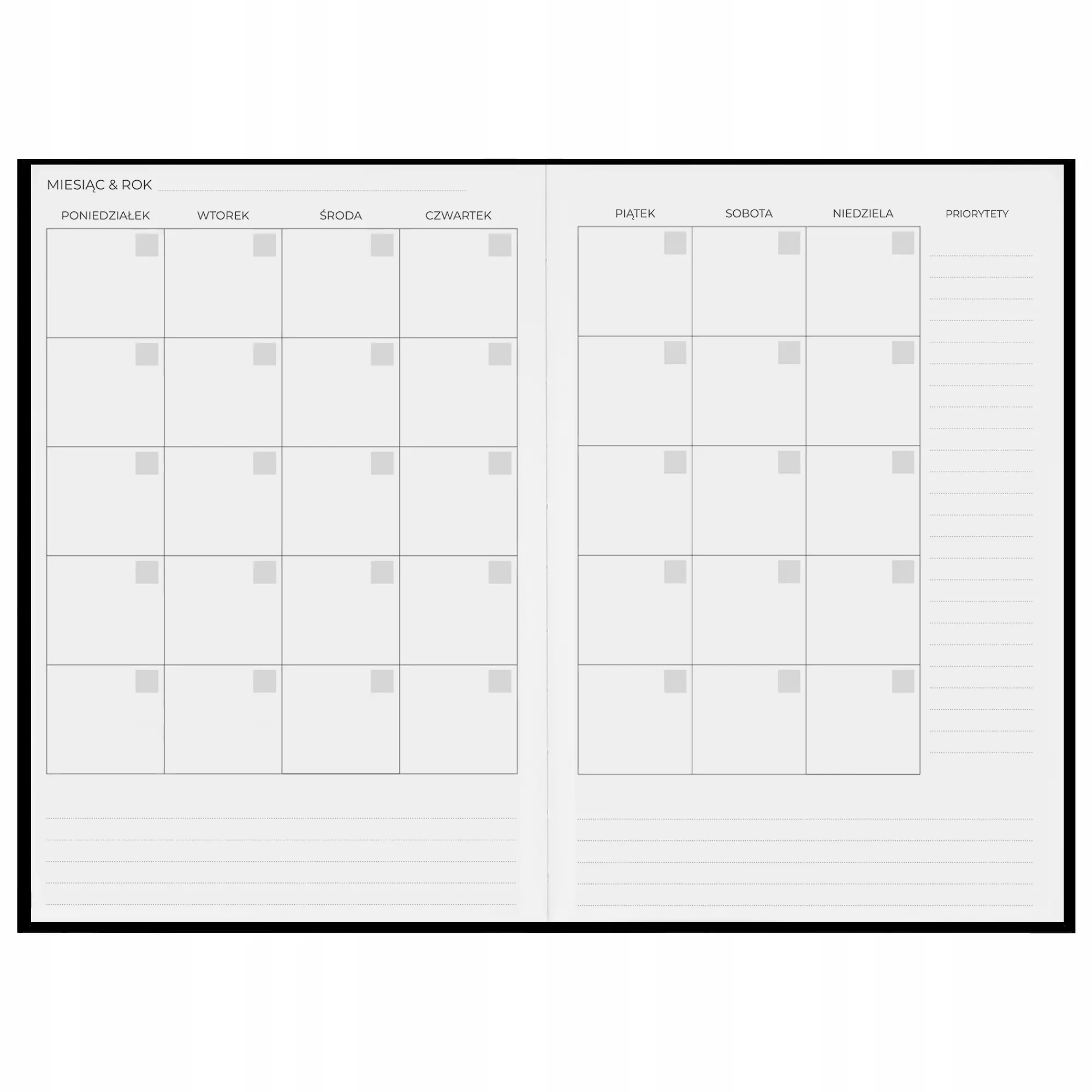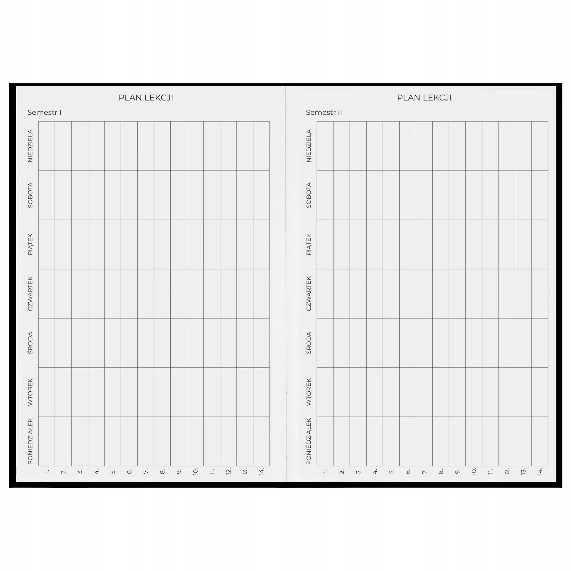 Kalendarz nauczyciela Planoxxy to funkcjonalny i starannie zaprojektowany planer tygodniowy, który pomaga uporządkować codzienne obowiązki szkolne oraz zadania organizacyjne. Niedatowany układ umożliwia rozpoczęcie korzystania z kalendarza w dowolnym momencie roku szkolnego, co daje dużą elastyczność w planowaniu i zarządzaniu czasem.