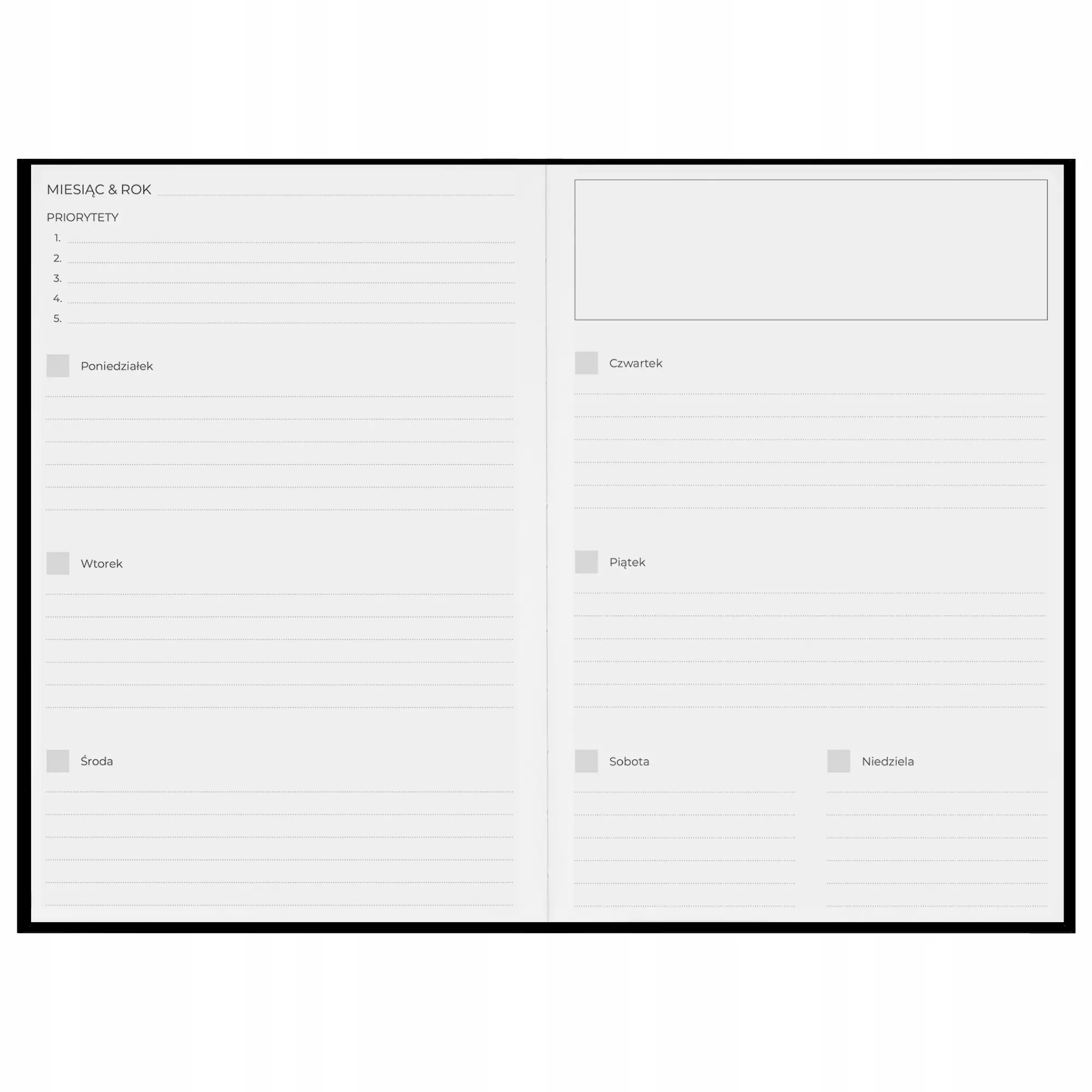 Wysoka jakość wykonania to kolejny atut kalendarza. Twarda, szyta oprawa o matowym wykończeniu w połączeniu z papierem o gramaturze 100g zapewnia trwałość i wygodę użytkowania. Dwie tasiemki w kontrastujących kolorach umożliwiają szybki dostęp do najczęściej używanych stron. Format B5 łączy poręczność z wystarczająco dużą przestrzenią do pisania, dzięki czemu planer sprawdzi się zarówno w szkole, jak i w domu.