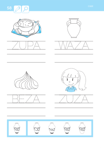 - rozwijanie motoryki małej: pisanie i rysowanie po śladzie,