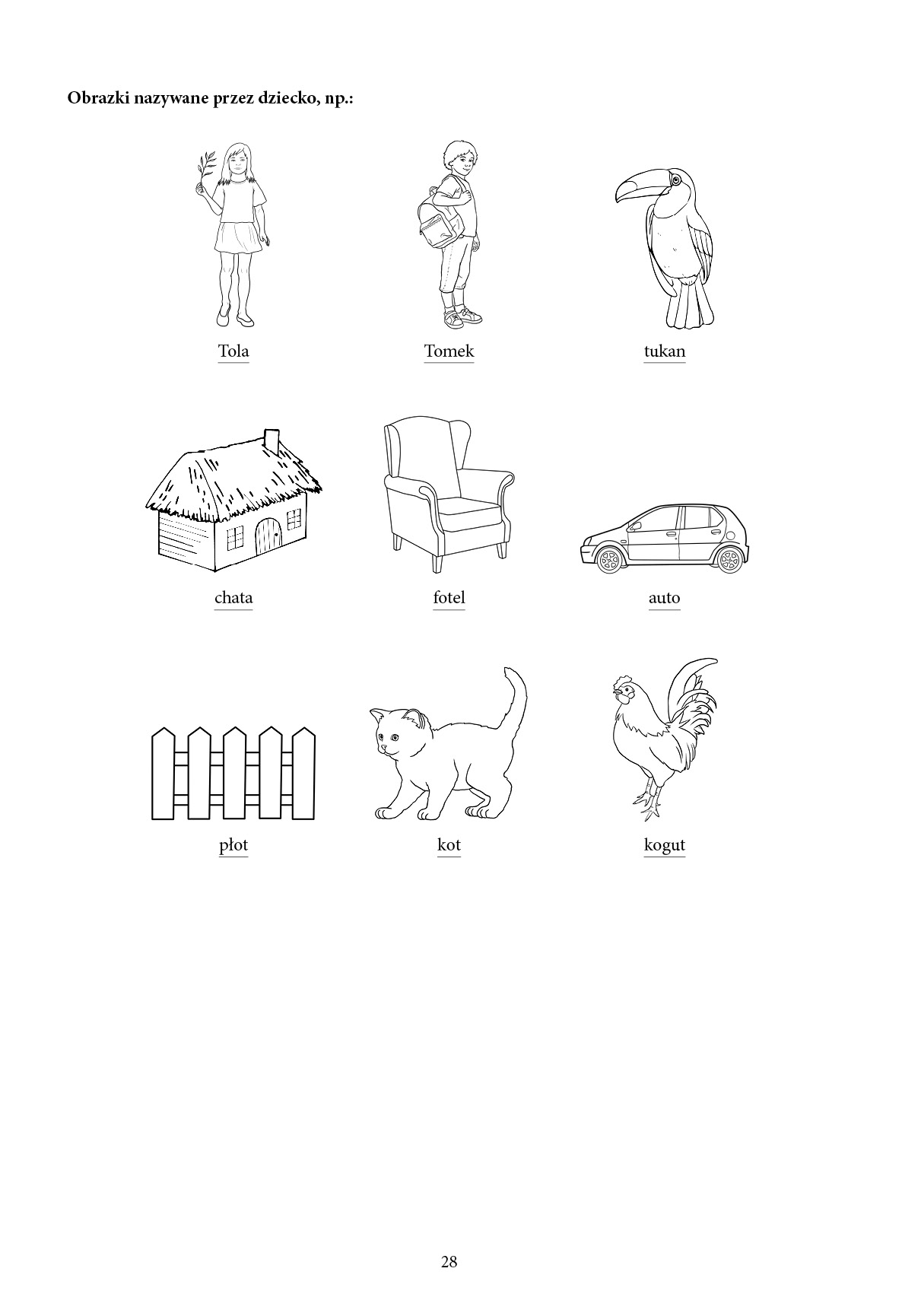 Publikacja przeznaczona jest dla logopedów, rodziców i opiekunów dzieci w różnym wieku, z opóźnionym rozwojem mowy, ale także z niepełnosprawnością intelektualną, z niedosłuchem, autyzmem, zespołem Aspergera, mózgowym porażeniem dziecięcym i zespołem Downa. Zamieszczony w niej bogaty materiał wyrazowy dotyczący spółgłosek [p, pi, b, bi, m, mi, t, d, n] pozwoli utrwalić ich artykulację, co znacznie usprawni rozwój mowy dzieci.