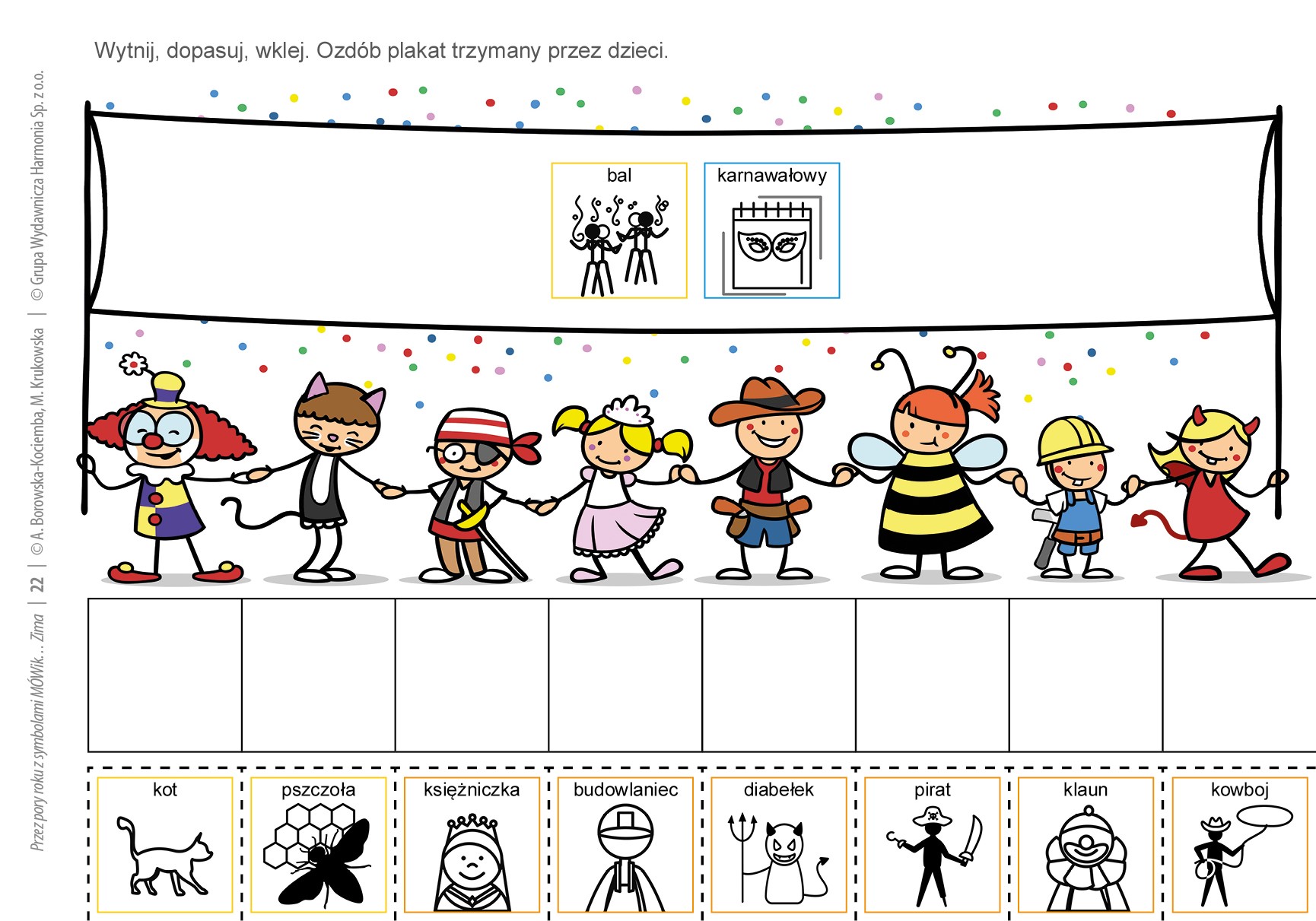 „Przez pory roku…” to propozycja pomocy dydaktycznej dla pedagogów i terapeutów pracujących z uczniami z niepełnosprawnością intelektualną, niepełnosprawnością sprzężoną oraz autyzmem. Prezentowane treści zostały wzbogacone symbolami MÓWik, co zwiększa grupę odbiorców kart o uczniów z zaburzeniami w komunikowaniu się. Publikacja może mieć zastosowanie jako pomoc dydaktyczna w placówkach edukacyjnych, a także w domu jako materiał wspomagający dla rodziców. Przeznaczona jest do pracy na wszystkich etapach edukacji w klasach integracyjnych, oddziałach edukacyjno-terapeutycznych, podczas zajęć rewalidacyjnych oraz zajęć rozwijających komunikację.