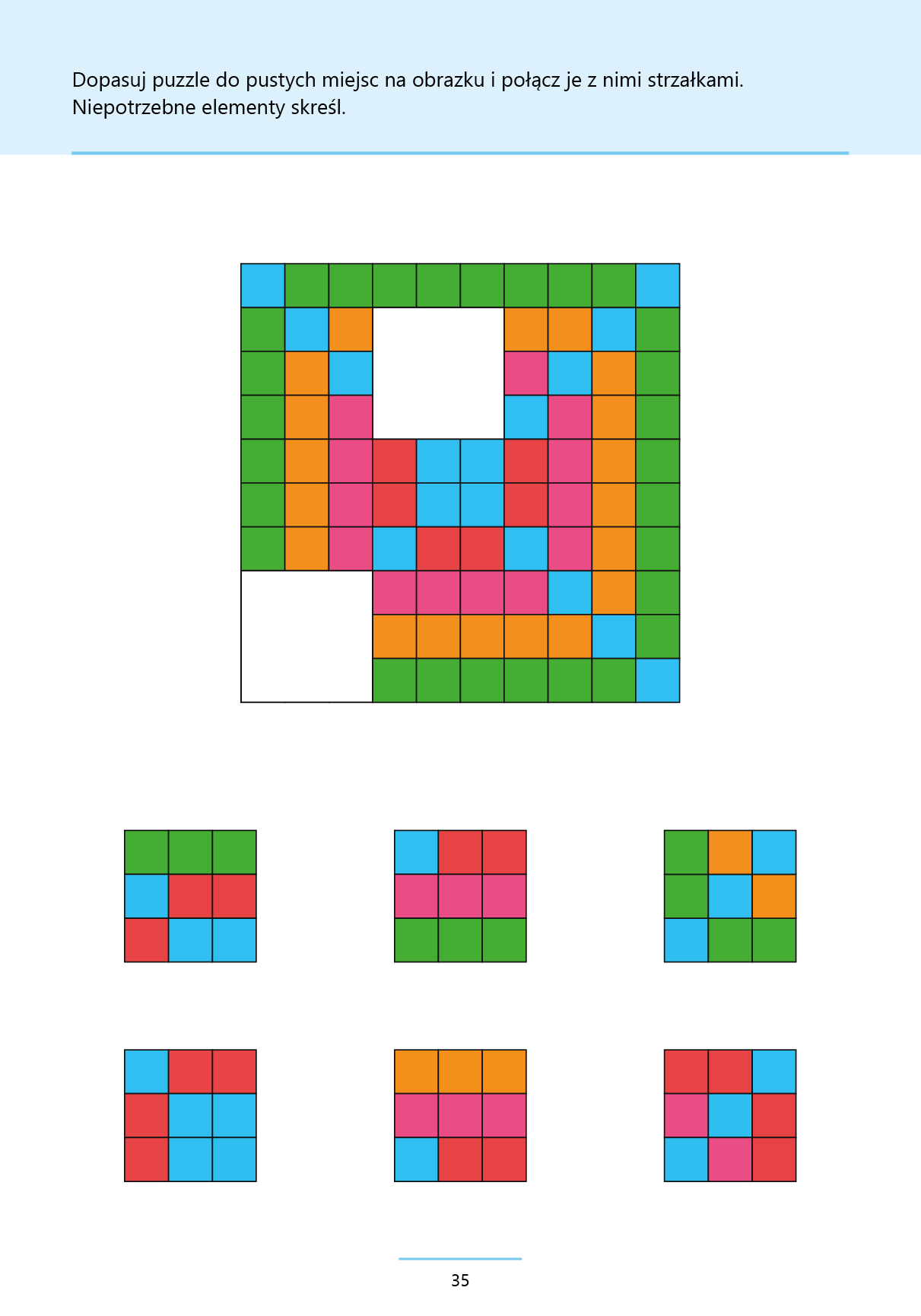 Wymienione zdolności można rozwijać, wykonując ćwiczenia zamieszczone w tym zeszycie. Wiele z nich zostało skonstruowanych tak, aby uczeń mógł dodatkowo zdobywać lub utrwalać wiedzę z zakresu języka polskiego, języka angielskiego, matematyki, historii, biologii, geografii, fizyki, chemii, plastyki, muzyki i informatyki.
