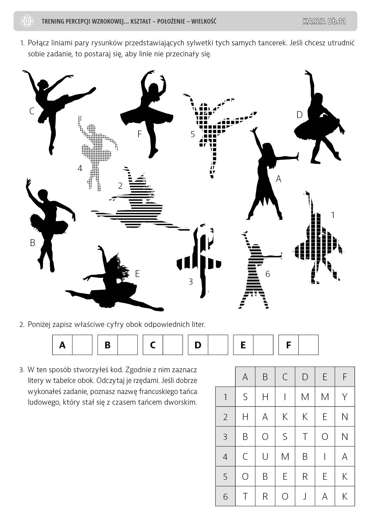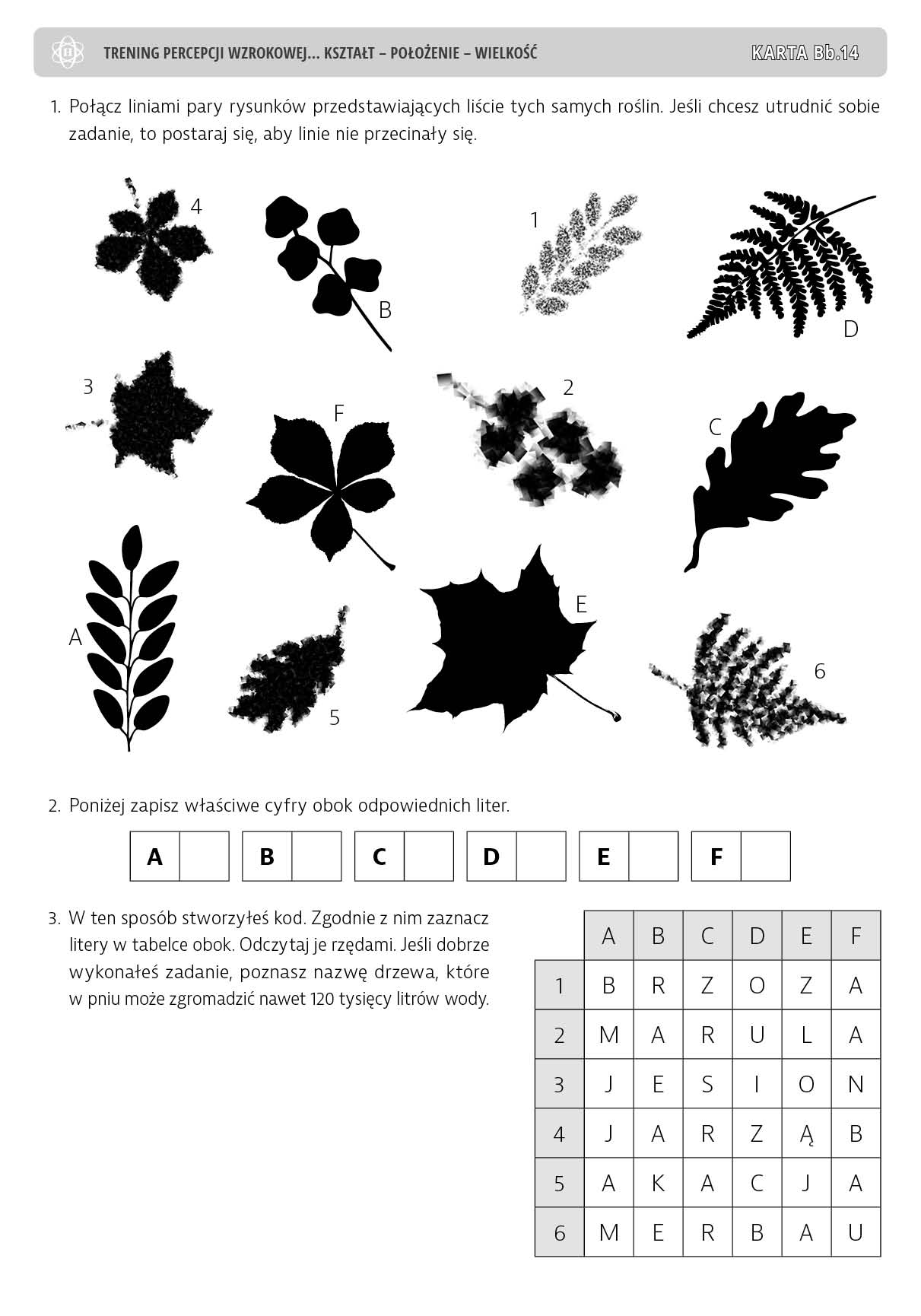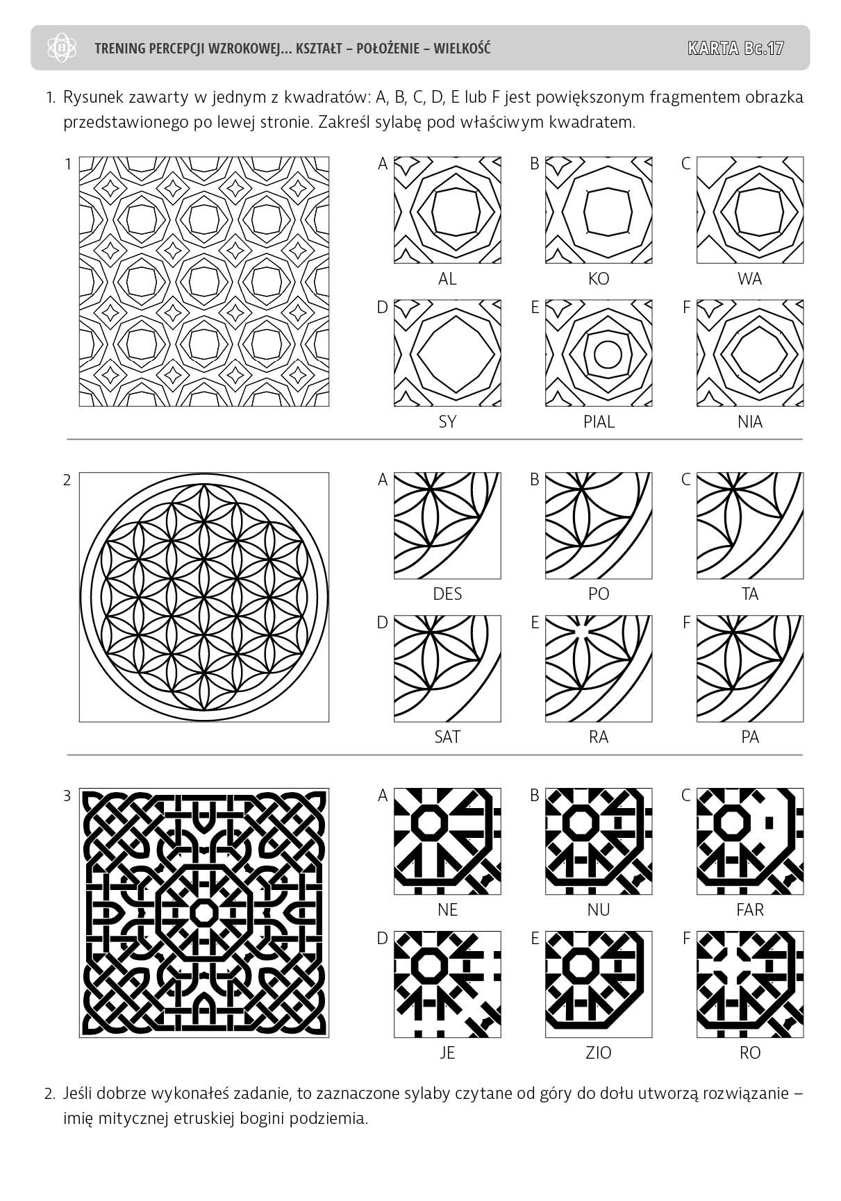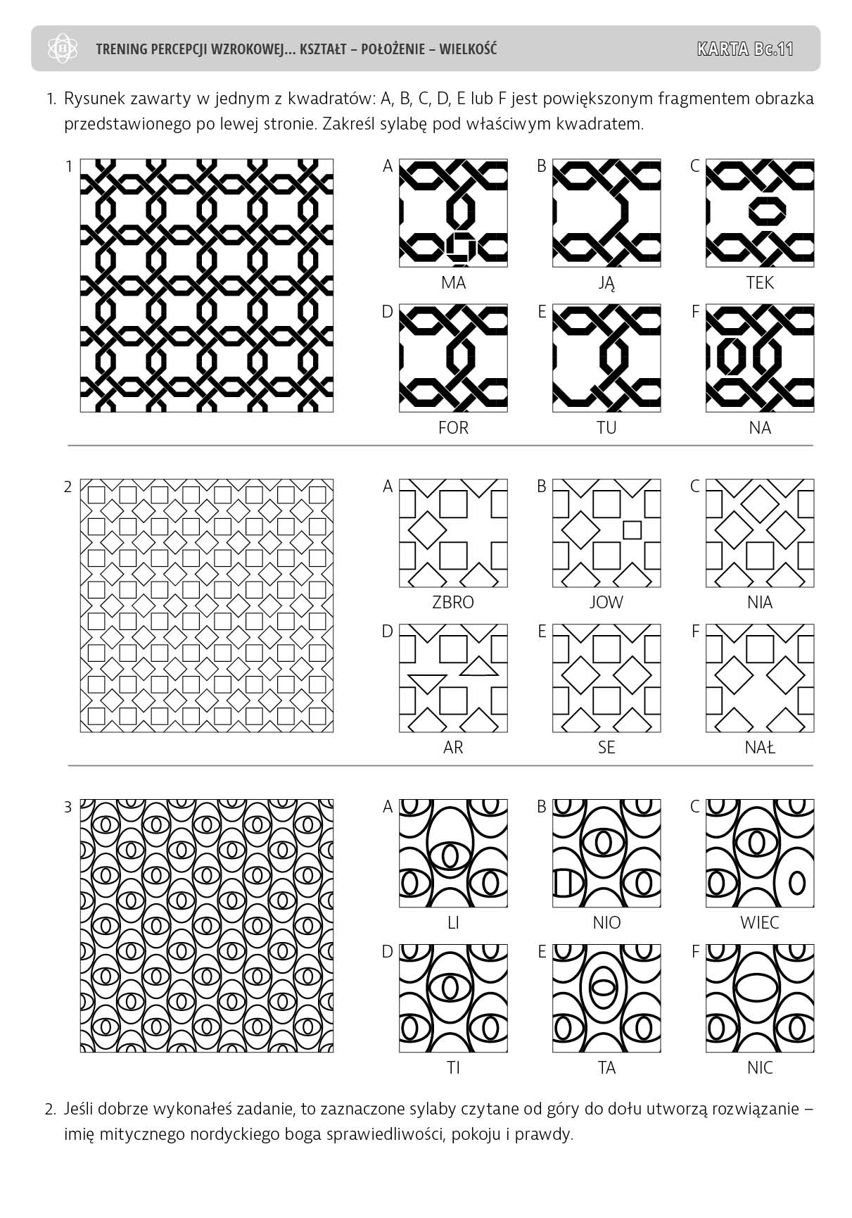Trening percepcji wzrokowej. Część B. Ćwiczenia doskonalące stałość spostrzegania. Kształt – położenie – wielkość