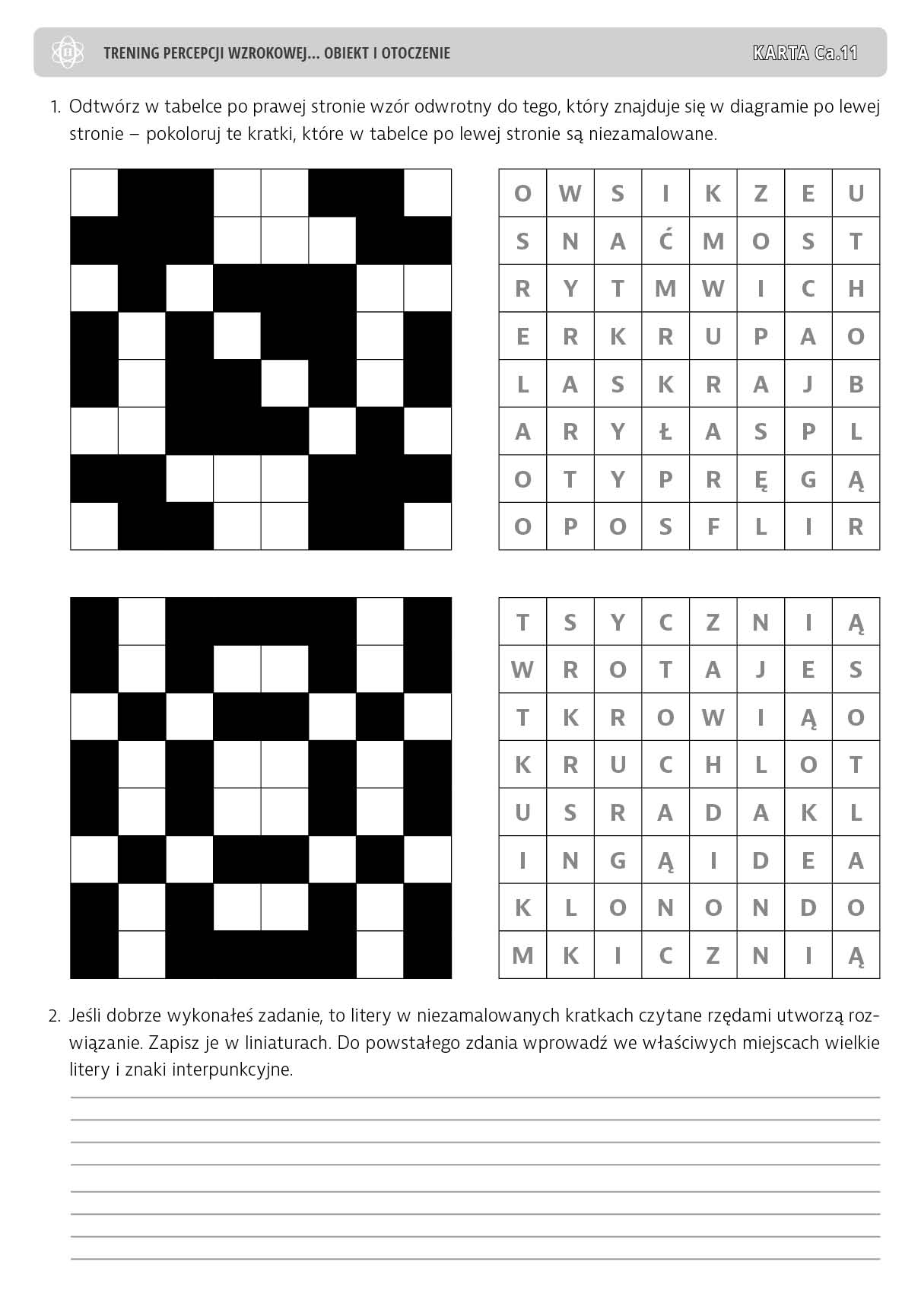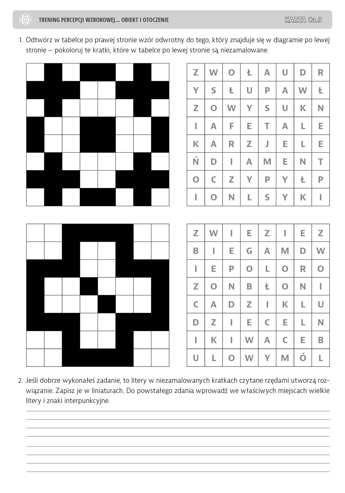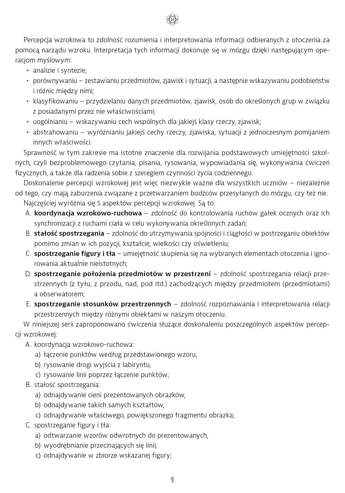 W niniejszej publikacji proponujemy następujące grupy ćwiczeń doskonalących umiejętność spostrzegania figury i tła: