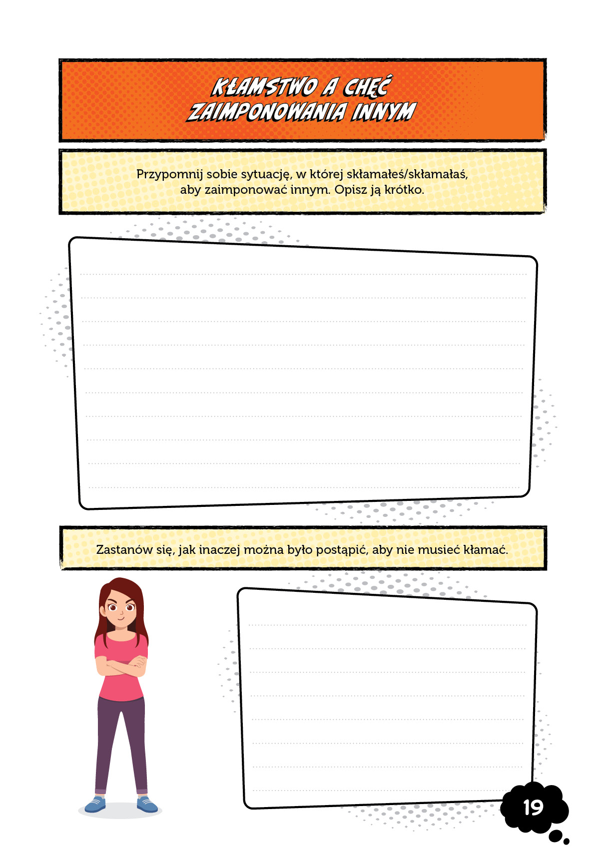 Dla kogo? Publikacja skierowana jest do dzieci w wieku 7–14 lat. Ze względu na zróżnicowany poziom zadań może być wykorzystywana u dzieci ze specjalnymi potrzebami edukacyjnymi w ramach zajęć terapeutycznych. Sprawdzi się także jako narzędzie wspierające rozwój umiejętności społecznych u wszystkich dzieci na etapie szkoły podstawowej.