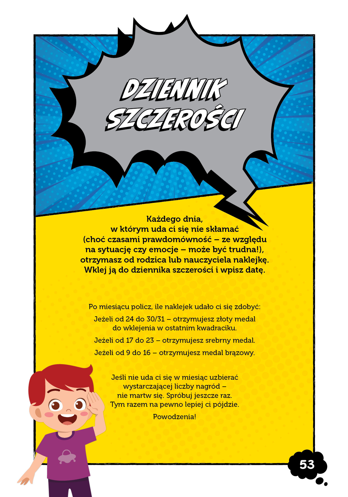 • dziennik szczerości – pomoc do wizualnego przedstawienia procesu radzenia sobie z prawdomównością