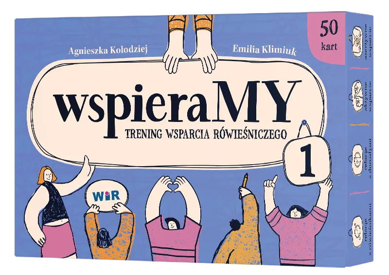WspieraMY. Trening wsparcia równieśniczego to narzędzie stworzone z myślą o młodzieży w wieku 14–18 lat. Bazuje na opisach trudnych sytuacji, których nastolatki mogą doświadczyć w codziennym życiu. Uczy, jak wspierać i prosić o wsparcie, jak rozmawiać i stawiać granice tam, gdzie młodzi najbardziej tego potrzebują.